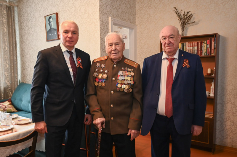 КРАСНОЯРСКИЙ КРАЙ, /НИА-КРАСНОЯРСК/. уководитель краевого Главка Александр Речицкий посетил по месту жительства ветерана Великой Отечественной войны 103-летнего Ивана Алексеевича Шпагина и поздравил его с Днём Великой Победы.
