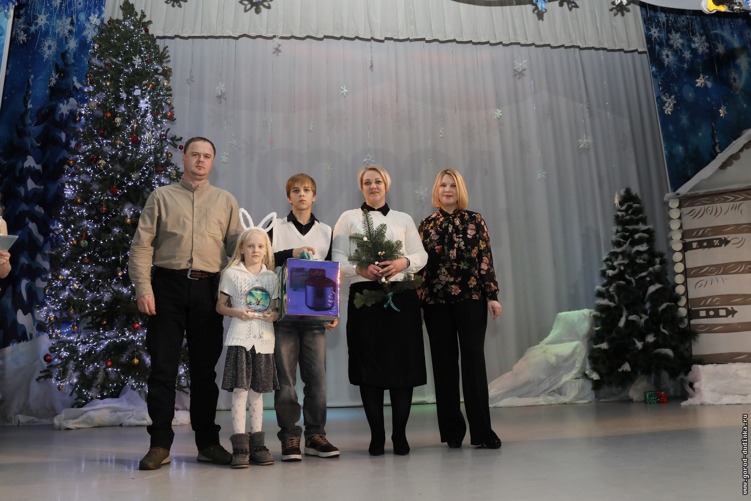 26 декабря в городском Доме культуры состоялась торжественная церемония награждения «Таймырская семья — 2024», приуроченная к закрытию Года Семьи. Поздравить и поблагодарить выдающиеся семьи территории собрались глава Таймыра Алексей Членов, заместитель председателя районного Совета депутатов Александр Иванов, заместитель главы Таймыра по социальной политике Татьяна Друппова, заместитель главы Таймыра по делам коренных малочисленных народов и вопросам сельского и промыслового хозяйства Николай Маймаго, заместитель главы города — председатель комитета культуры, молодежной политики и спорта городской администрации Татьяна Жиганова, председатель Дудинского городского Совета депутатов Сергей Бородин и исполняющий обязанности директора Заполярного транспортного филиала ПАО ГМК «Норильский никель» Сергей Колесник.