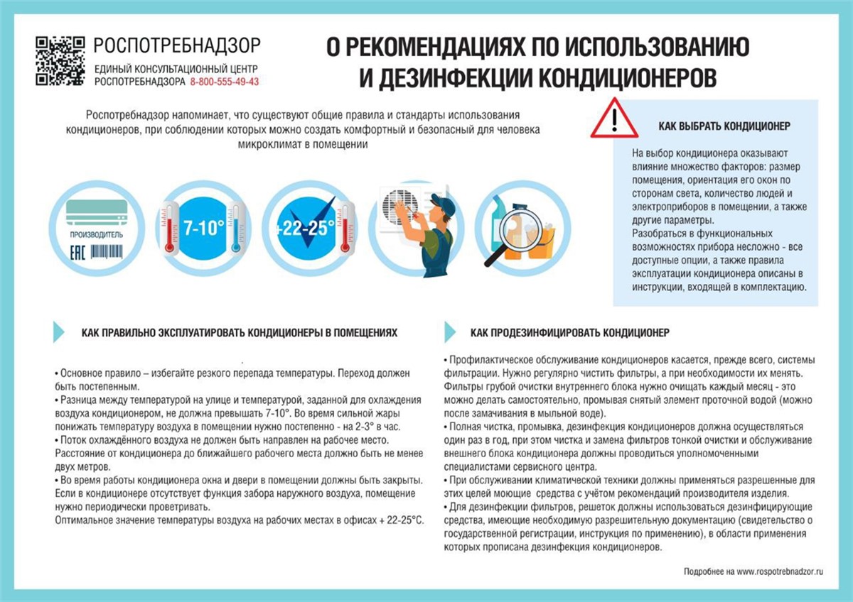 Также в Роспотребнадзоре напомнили, что кондиционер должен проходить профилактическое обслуживание. Оборудование нужно чистить, промывать и дезинфицировать.
