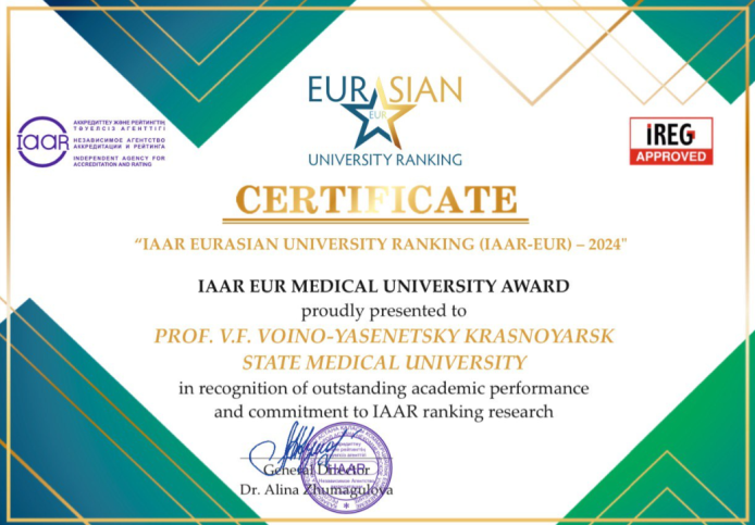 Красноярский государственный медицинский университет Минздрава России вошёл в международный рейтинг IAAR Eurasian University Ranking (IAAR EUR). Это является показателем высокого качества образования, что является приоритетным направлением развития вуза.