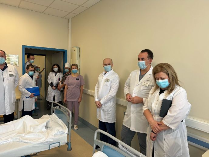 Завершил рабочую группу обход отделения абдоминальной онкологии №1 им. Н.А. Рыкованова. В отделении проходят лечение пациенты с злокачественными новообразованиями желудка, поджелудочной железы и пищевода.