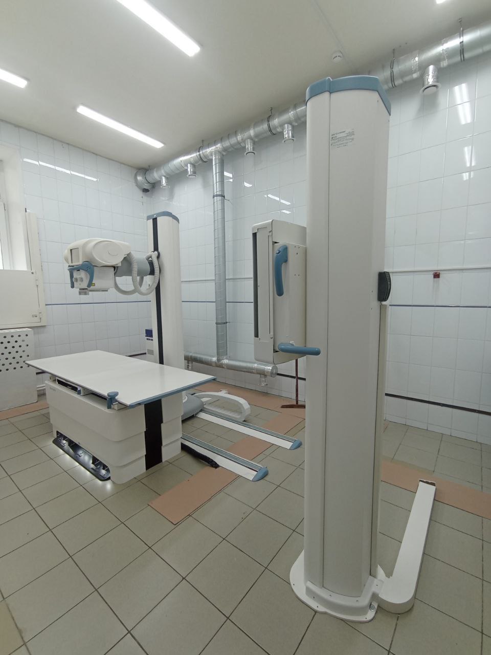 Новую рентгеновскую диагностическую стационарную систему в больницу привезли в январе, а сейчас идёт сборка, монтаж, и опробация её в работе.